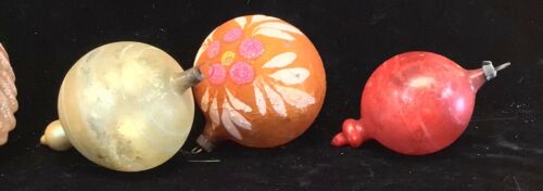 3 Vintage Hand Blown Glass Christmas Ornaments