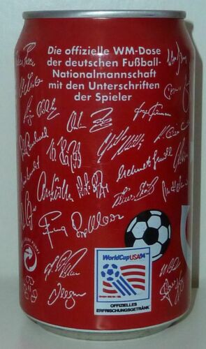 OLD rare COCA-COLA Coke soccer FIFA WORLD CUP USA 94 signature can GERMANY cans