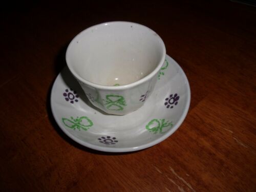 Antique Stick Spatterware Cup and Saucer Flower Design
