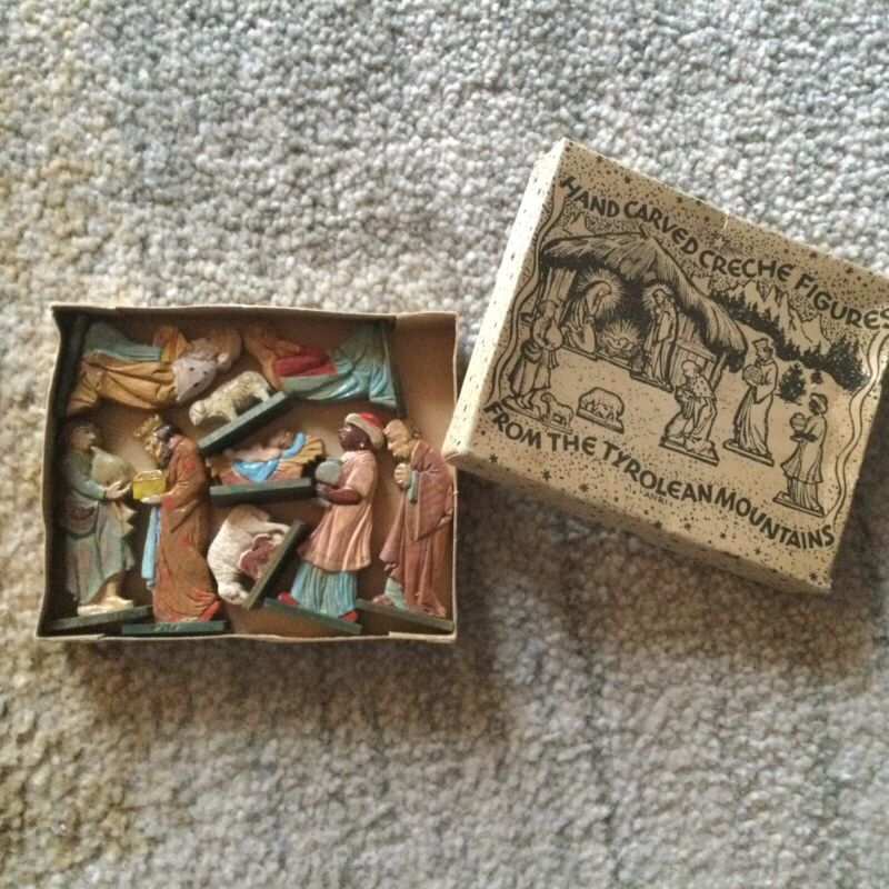 Title (ebay affiliate link): VINTAGE ANRI WOODEN HAND CARVED painted CRECHE FIGURES MINIATURE Set Tyrolean (A