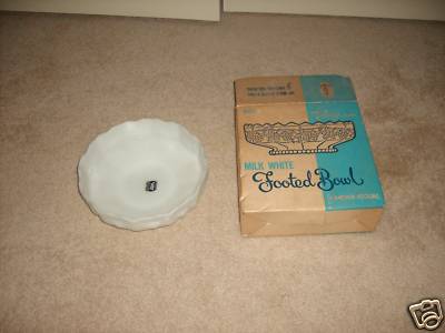 VTG HTF Anchor Hocking/FireKing milk glass footed bowl