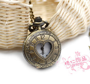 ANTIQUE HEART CLOCK WOMAN POCKET NECKLACE WATCH #221