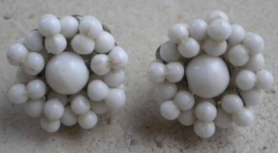 Miriam Haskell Signed Milk Glass Screw Back Earrings NR