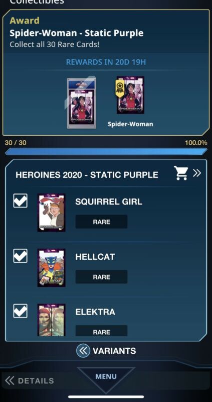Title (ebay affiliate link): Topps Marvel Collect! Heroines Purple Static 30 CARD!! Rare FULL Set Award Ready