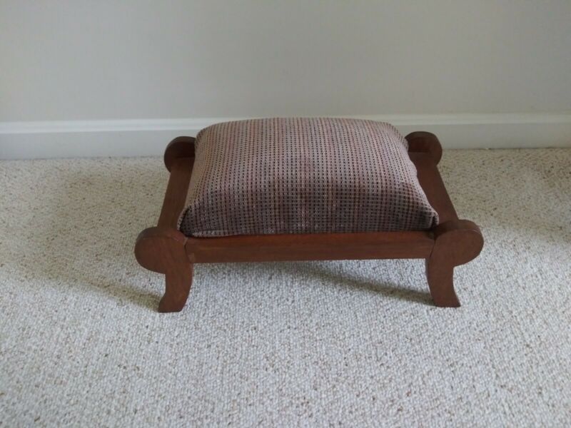 Title (ebay affiliate link): Vintage Wood Footstool Shabby Sheek Removable Cushion Scroll Ends Solid Wood