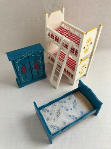 Vintage PENNSYLVANIA DUTCH Bunk Beds Double Bed Armoire DOLL HOUSE FURNITURE
