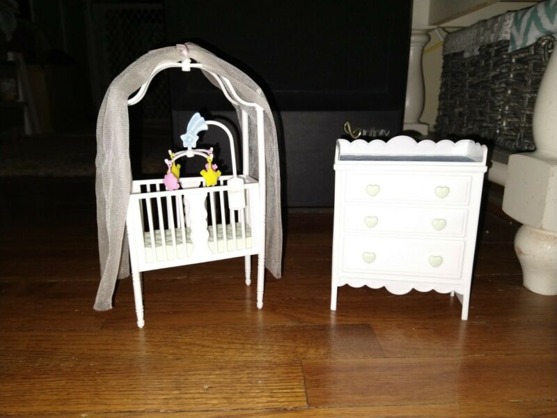 Vtg 1997 Barbie Nursery Furniture Crib Dresser