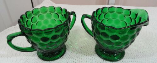 Title (ebay affiliate link): Anchor Hocking Forest Green Bubble Creamer and Sugar
