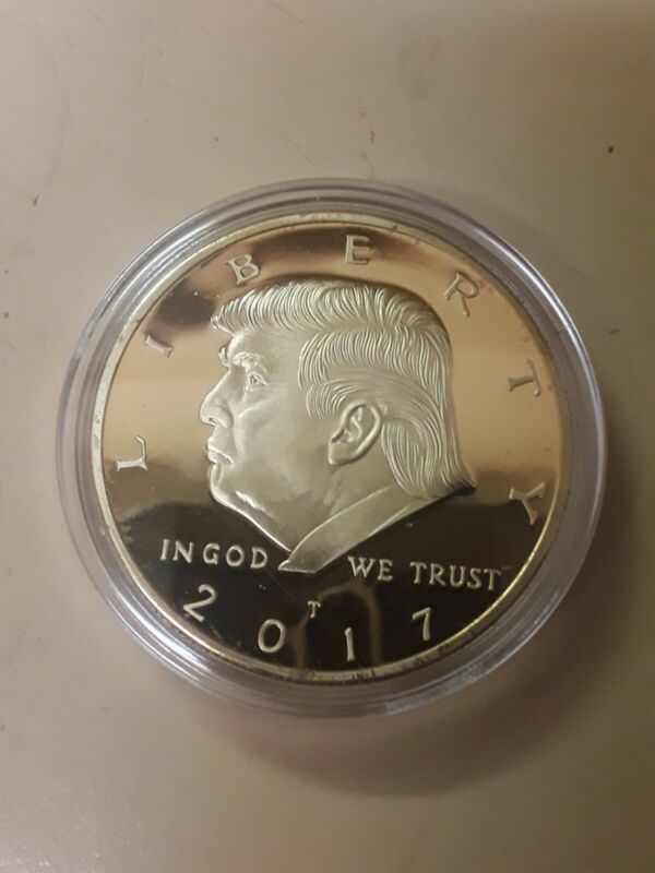 Donald J Trump 2017 silver dollar size gold plated coin presidential seal 45th T
