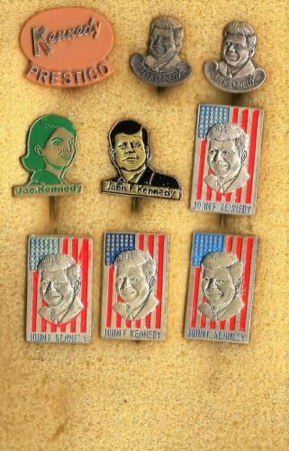 8 fullmetal ''60''s badges of president J.F. Kennedy and first Lady Jacky + bonus