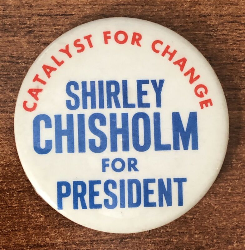 Title (ebay affiliate link): 1972 SHIRLEY CHISHOLM for PRESIDENT Political Campaign Pinback Button Vintage