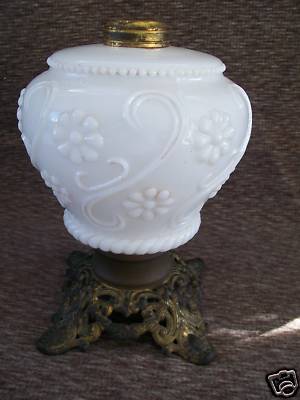 Antique EAPG Milk Glass Oil Table Lamp Cast Iron Base