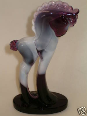 AMETHYST PURPLE AND MILK SLAG ART GLASS PONY HORSE DECO