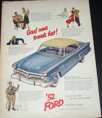 VINTAGE AD-1952 FORD "Good News Travels Fast"