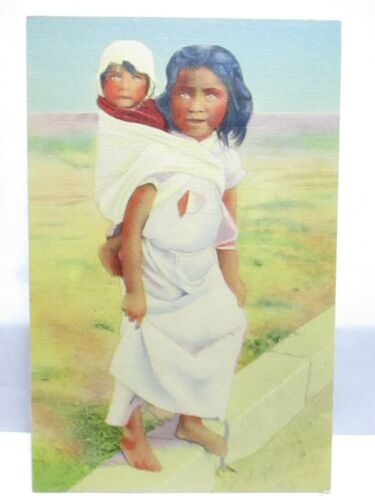 1940 POSTCARD " LITTLE APACHE LASS " CARRYS LITTLE BABY BROTHER BIO UNUSED