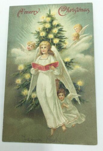 Title (ebay affiliate link): VINTAGE CHRISTMAS POSTCARD, ANGELS & TREE, BY GERMAN AMERICAN SERIES, UNPOST