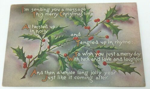 Title (ebay affiliate link): VINTAGE CHRISTMAS POSTCARD, VERSE, HOLLY, BY SANFORD CO, POSTED