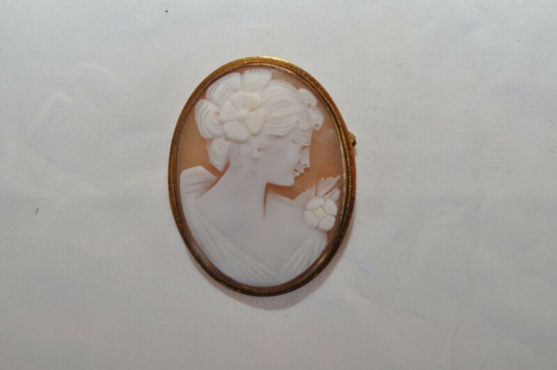 Antique Vintage CARVED SHELL CAMEO Pin Brooch Pendant