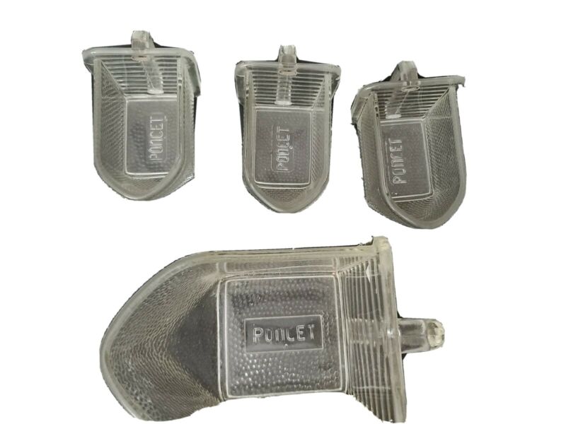 4 RARE Antique Poncet Glass Dry Scoops for Hoosier Cabinet ~ ORIGINAL
