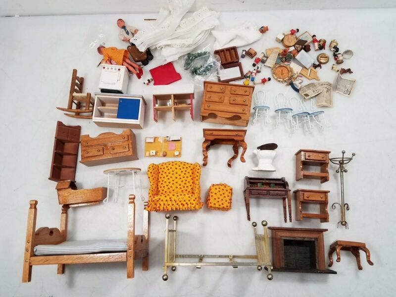 Title (ebay affiliate link): Vintage Doll House Furniture Beds Dressers Endtables Dolls Small Trinkets++