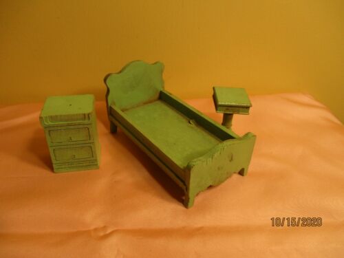 1930''s vintage Strombecker wood doll house furniture bed chest & stand