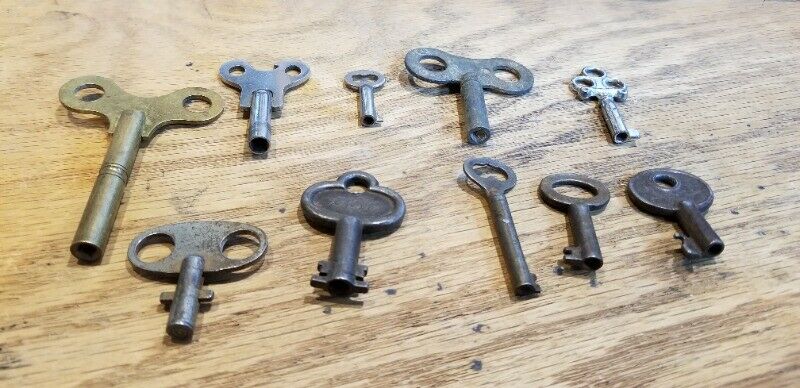 Title (ebay affiliate link): LOT OF (10) VINTAGE & ANTIQUE CLOCK WINDING KEYS UNMARKED