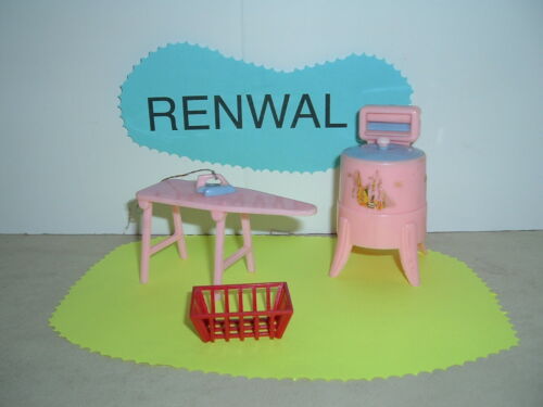 VINTAGE RENWAL DOLLHOUSE FURNITURE WASHING MACHINE IRON & IRONING BOARD