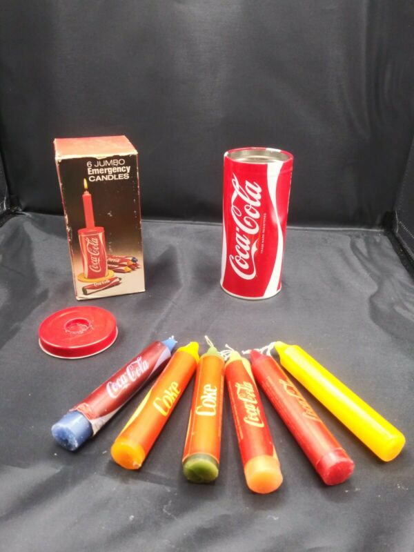 Title (ebay affiliate link): Vintage Coca Cola Coke Tin Candle Holder & 6 Jumbo Emergency Candles