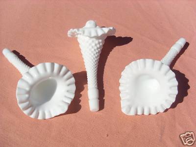 3 Fenton White Milk Glass Hobnail Epergne Flutes