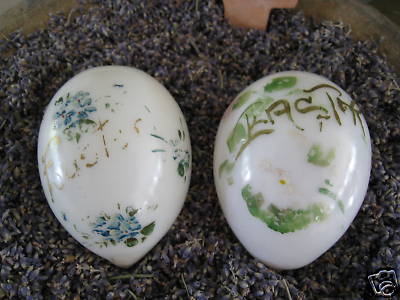 ANTIQUE VICTORIAN HAND PAINTED MILK GLASS EASTER EGGS~~