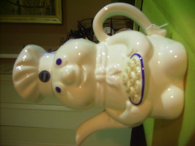 PILLSBURY DOUGHBOY TEAPOT IS HOLDING A TRAY OF COOKIES