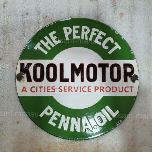 KOOL MOTOR OIL 12 INCHES ROUND VINTAGE ENAMEL SIGN