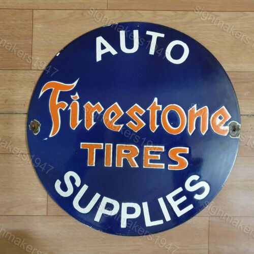 Title (ebay affiliate link): FIRESTONE TIRES PORCELAIN ENAMEL SIGN 12 INCHES ROUND