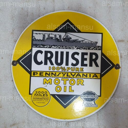 CRUISER MOTOR OIL 12 INCHES ROUND VINTAGE ENAMEL SIGN