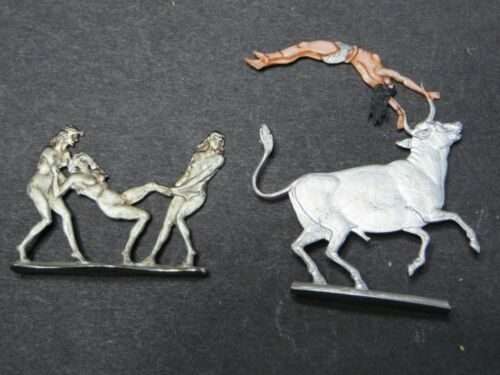 Title (ebay affiliate link): German Tin Flat Zinnfiguren Figures - "Bull Jumper from Crete & Female Wrestler"
