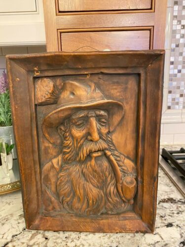Vintage Carved Wood Wall Art Country Man with Pipe