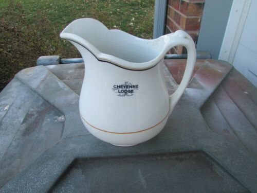 Old Original heavy IRONSTONE CHEYENNE LODGE advertising pitcher