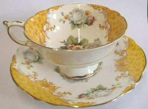 VINTAGE PARAGON BONE CHINA YELLOW CABBAGE ROSE CUP AND SAUCER