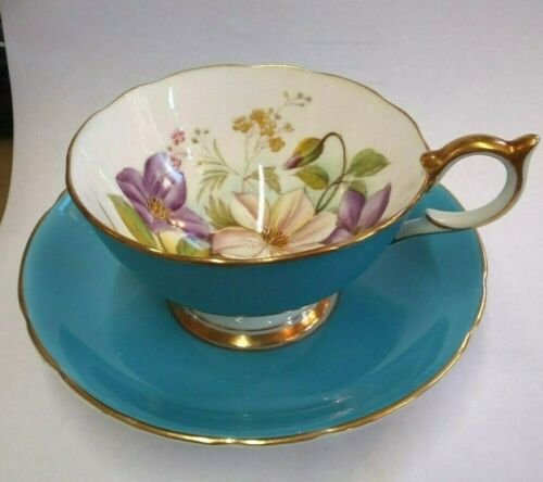 VINTAGE ANYSLEY CLEMATIS PATTERN CUP & SAUCER ARTIST S. BENTLEY