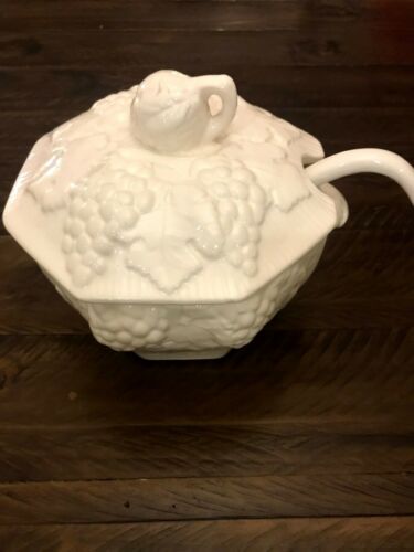 Vintage Grape Pattern Porcelain Soup Tureen With Lid and Ladle