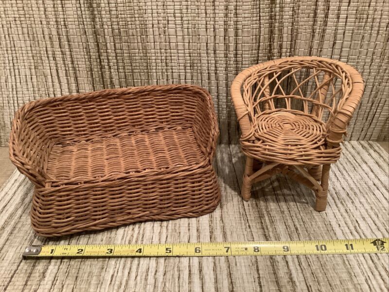 Wicker Chair for Dolls Barbies Dollhouse Rattan Couch & Chair Boho Furniture
