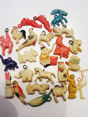 LOT OF 24-CRACKER JACK-TRINKETS-CELLULOID CHARMS TOYS