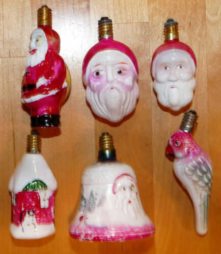6 Vintage Christmas Santa Claus Milk Glass Figural Parrot Working Light Bulbs