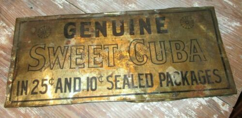 Antique Vintage SWEET CUBA Tobacco Tin Tacker Sign