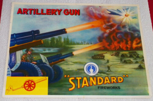 Title (ebay affiliate link): VINTAGE "STANDARD FIREWORKS" ARTILLERY GUN FIRECRACKER LABEL FROM INDIA 9"X7"