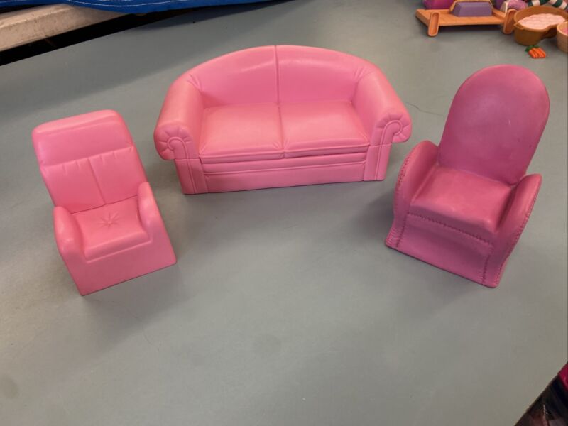 Vintage 1994 Barbie Mattel Pink Couch & Chairs Dream House Plastic Furniture