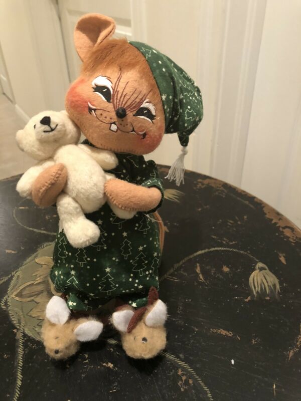 Title (ebay affiliate link): 2004 Annalee Mouse in a Night Gown and Slippers Holding a Teddy Bear