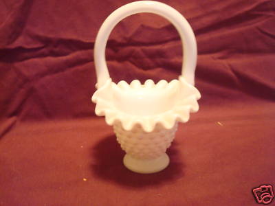 Milk glass hobnail basket