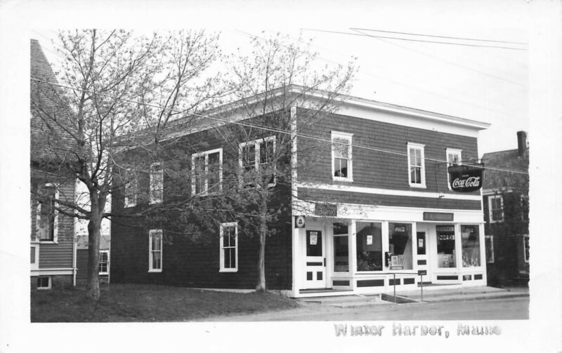 Winter Harbor ME Main Street Post Office Storefront Coca-Cola Sign RPPC