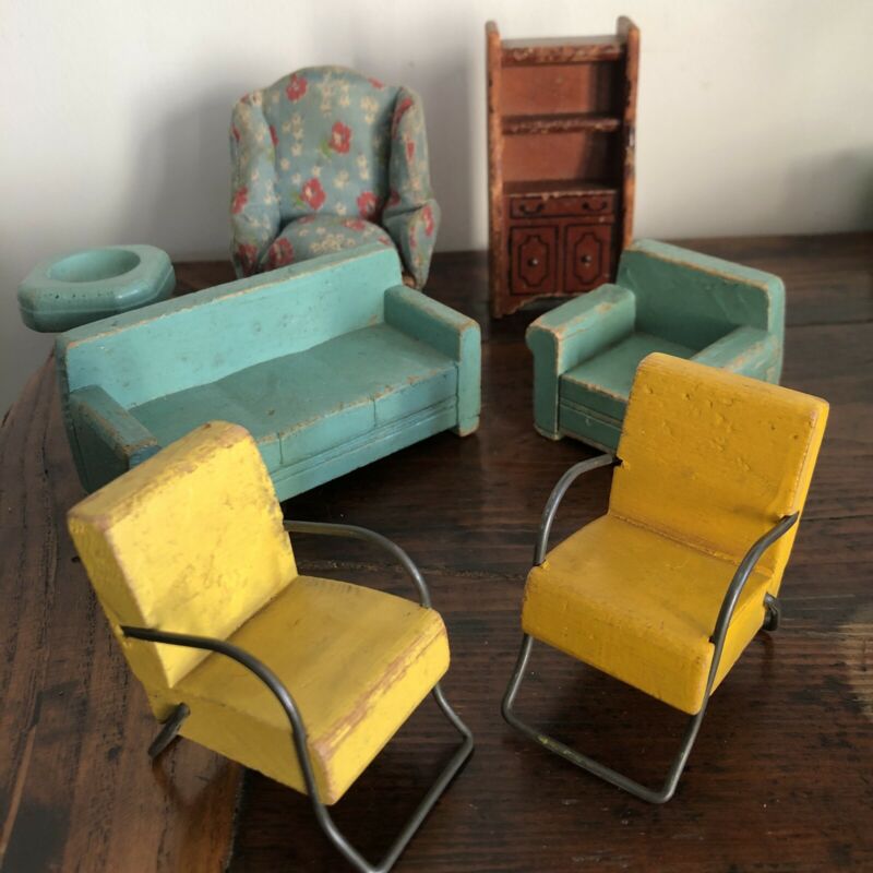 Title (ebay affiliate link): Vintage Wood Dollhouse Furniture Doll House Living Room Chairs Sofa lot of 7